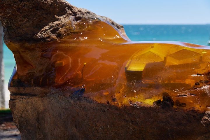 Anthroposcenic comprises of found objects embedded in resin, then set within a large piece of stone. The work captures a moment in time, containing joy and tragedy like any other, and asks people to question how our world will be remembered in 10,000 years.