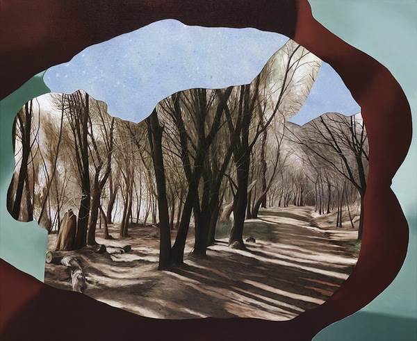 Wormald’s dexterity with the brush and scissors has enabled her to create surreal spaces where abstraction and naturalism perfectly intersect, forming an opening (or an aperture) into natural worlds filled with trees, rocks, forests and desert.