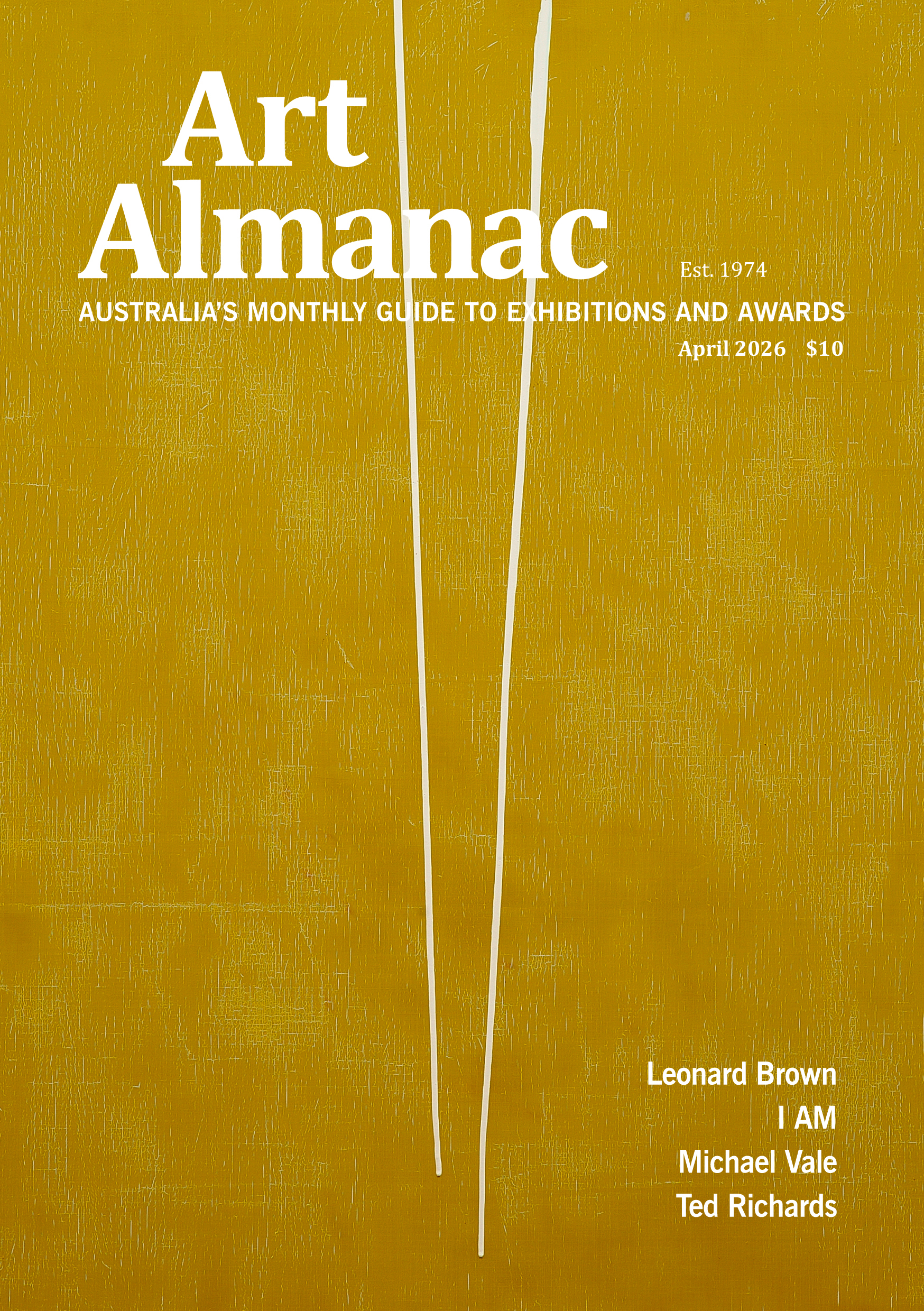 Art Almanac | Australia’s leading monthly guide to “what’s on” in the arts: exhibitions, events, workshops, open studios, artist opportunities, art awards and services. April 2026 features $700k+ in art prizes/funding, 570+ galleries, and 390+ artists, both emerging and established.