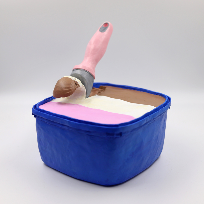 Kenny Pittock, Neapolitan and scoop, 2022, acrylic on ceramic. Photograph: Kenny Pittock. Courtesy the artist and Bendigo Art Gallery, Victoria