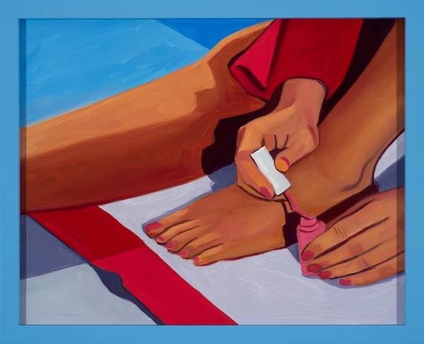 Bridgette McNab’s painting practice is focused on portraiture and still life, elements which comprise her second solo exhibition titled ‘Red, Yellow, Blue’, inspired by Eric Rohmer and Jean Luc Godard’s unique approach to story-telling and the relationship between painting and film. McNab’s oil paintings merge pop-culture, history and what the artist calls ‘a new fictional reality’ in these mise en scène compositions.