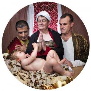 Deborah Kelly’s photographic portrait series The Miracles is one of the major commission pieces for the exhibition. Kelly sought out and photographed 37 families whose children were conceived through Assisted Reproductive Technology – such as IVF. Family portraits, presented in antique frames, are based on Renaissance paintings of disputed authorship and directly reference their composition, lighting, symbolic objects and subject’s expressions. Kelly invited a varying array of families for the project; “heterosexual, same-sex, transgender, single parents, multigenerational families, and others. All the families have, or are having, ‘miraculously conceived’ children”, she explains.