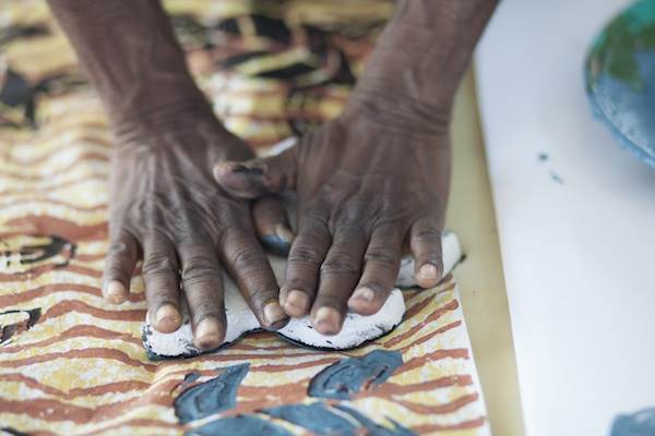 2015 Darwin Aboriginal Art Fair, block printing workshop with Marnin Studio. Courtesy Darwin Aboriginal Art Fair (DAAFF)