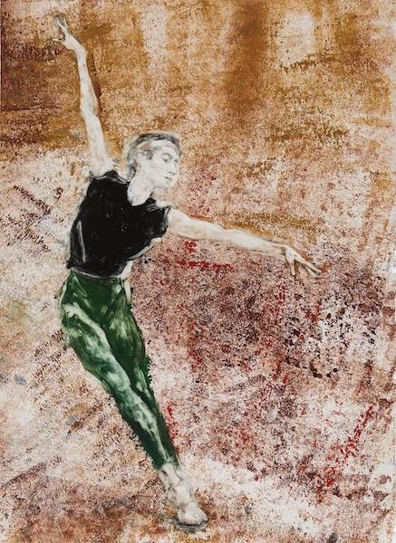 Debra Luccio, Chynoweth, 2017, monotype on Velin Arches paper, 59.5 x 43cm (Brett Chynoweth, The Australian Ballet, rehearsing Tim Harbour’s Squander and Glory). Photograph: Filippo Messina