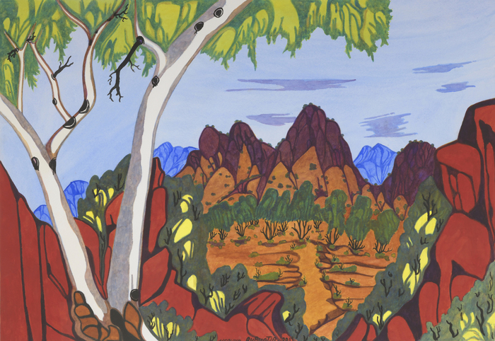 Mervyn Rubuntja, Mt Zeil, Central Australia (detail), 2019, watercolour. Araluen Art Collection. Acquired from Desert Mob 2019. Courtesy the artist and Araluen Arts Centre, Northern Territory
