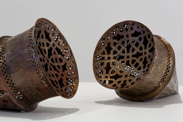 Shireen Taweel, Devices for Listening, 2020, engraved and pierced copper, 25 × 25 × 40cm. Photography: Document Photography. Courtesy the artist and Granville Centre Art Gallery, Sydney