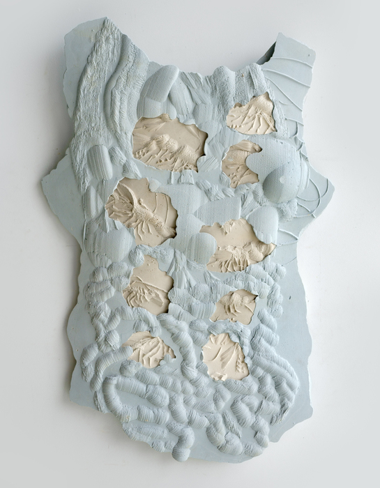Bruce Reynolds, Wedgewood Cuirass, 2018, Hydrocal and pigments, 85 × 60 × 8cm. Courtesy the artist