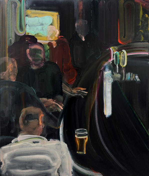 Sydney-based artist Holly Greenwood is known for an interest in the ubiquitous Australian pub; this exhibition of new paintings continues her exploration of ghostly figures, past and present, in often communal spaces as they connect or disconnect from one another.