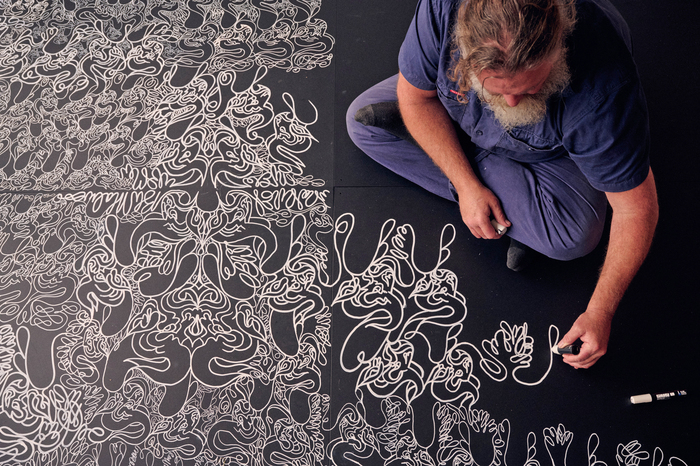 Featuring new commissions, insights include into Carey’s authorship of True History of the Kelly Gang; Gilson’s Wadawurrung ancestors’ Creation story through new work Bundjil Morrgalyu Turt Barram Murrup / Bundjil and the Evening Star Spirits; Hale explaining his monumental automatic drawing spanning nine metres; and Puangthong weaving together childhood memories in a twelve-metre painting with traditional Thai temple painting and Melbourne graffiti culture influences.