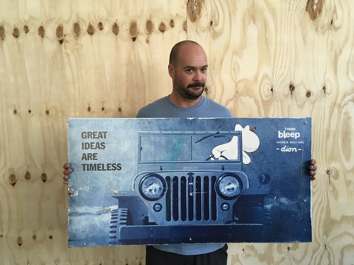Dion Parker with original artwork. Photograph: Natalie Popovski.