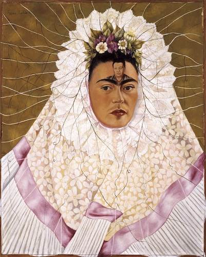 The exhibition concludes with Kahlo’s The Love Embrace of the Universe, the Earth (Mexico), Diego, Me, and Senor Xolotl (1949), a self-portrait that celebrates the final resolution of the their marriage. Here Kahlo is the earth mother holding Diego as a young, defenceless child. Their union sustained by a series of love embraces that roots them in the Mexican earth and in the ancient dark/light duality of a pre-Columbian universe. “It’s a really fascinating image because it’s an artwork that comments on the artists’ relationship and a certain inversion of it when one compares this moment in 1949 with the beginning of their marriage. It’s also a painting that brings together different belief systems that in different ways impacted upon Kahlo’s thinking about art – Aztec imagery, Hindu imagery, and Christian iconography are all brought together within Kahlo’s unique world view,”says Chambers.