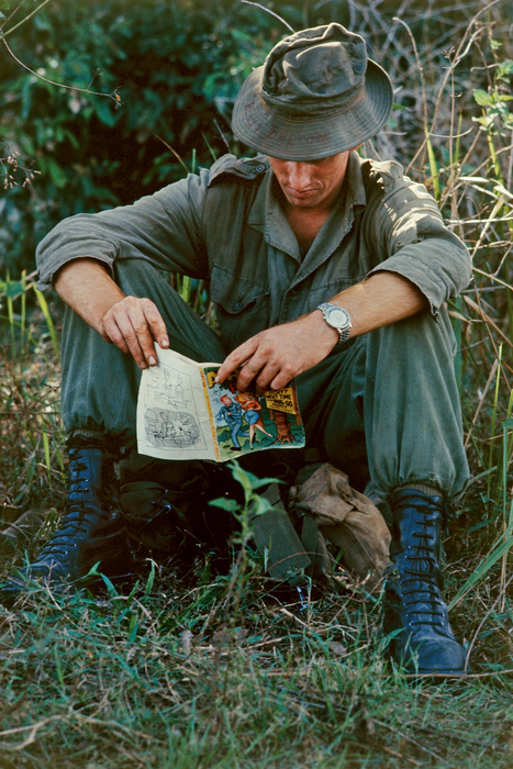 Tim Page, 1 RAR Digger takes a break on patrol near Biên Hòa shortly after Australian deployment, 1965, Fujiflex print / Gift of Tim Page, 2015, City of Townsville Art Collection, Accession number: 2015.0028.000 / Courtesy Pinnacles Gallery, Queensland