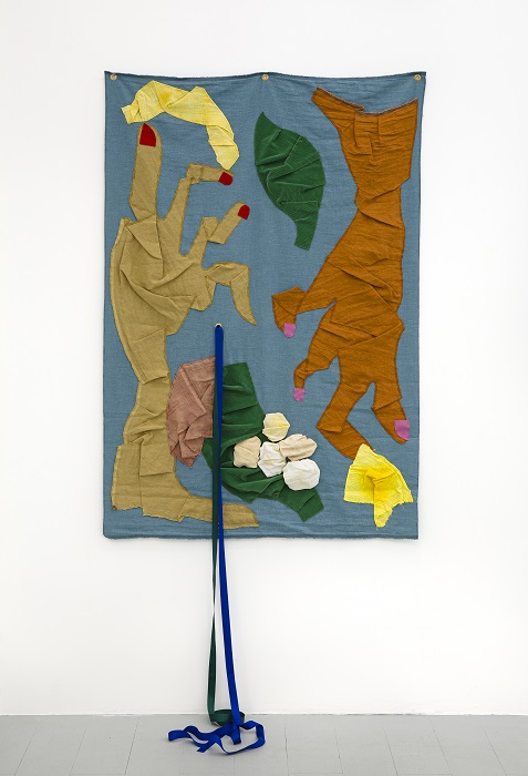 Nadia Hernández, Dulce de lechoza verde (procedimiento)/Green papaya sweet (procedure), 2021, cotton, linen, and corduroy on linen textile, 145 × 100cm. Courtesy the artist and Grace Cossington Smith Gallery, Sydney