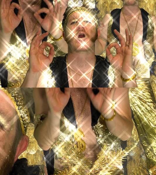 ‘LIFE IS SEXY’ features a cast of rather Lynchian eccentric, grotesque characters clad in garish clothing who occupy the streets of Times Square in New York, the casinos of Las Vegas or the Sunset Strip in California. Improvised by Franco – the sole performer – personalities include: a zany, doughnut-carrying clown; a sweaty bling- encrusted, money-obsessed individual (reflecting the economic inequality the artist witnessed); a rainbow-fused figure wielding a unicorn on a stick; a shirtless male with sagging pants and ink-drawn muscles; a Michael Jackson fan in bondage gear (single glove included); as well as a cross-dressing semi-nude