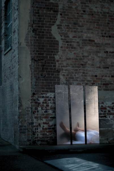 Kate Baker, Lena on the Tramp, 2018, hand and digitally printed silver mirror. Photograph: Kate Baker