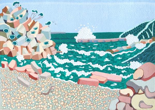 Jacqueline Balassa, Little Cove, South Africa, 2017, gouache on paper, 21.5 x 30cm. Courtesy the artist and Art Atrium, Sydney
