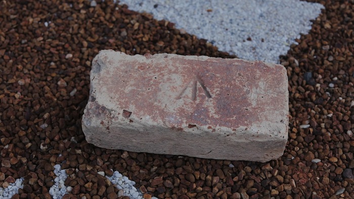 Visitors are encouraged to walk over the artwork, which has been created by Jones using red and white gravel sourced from Wiradjuri Country, which will play a role in the disintegration of the installation. As the bichromatic gravel mixes the emu tracks and broad arrows together, our focus is drawn to the importance of protecting and preserving cultural sites.