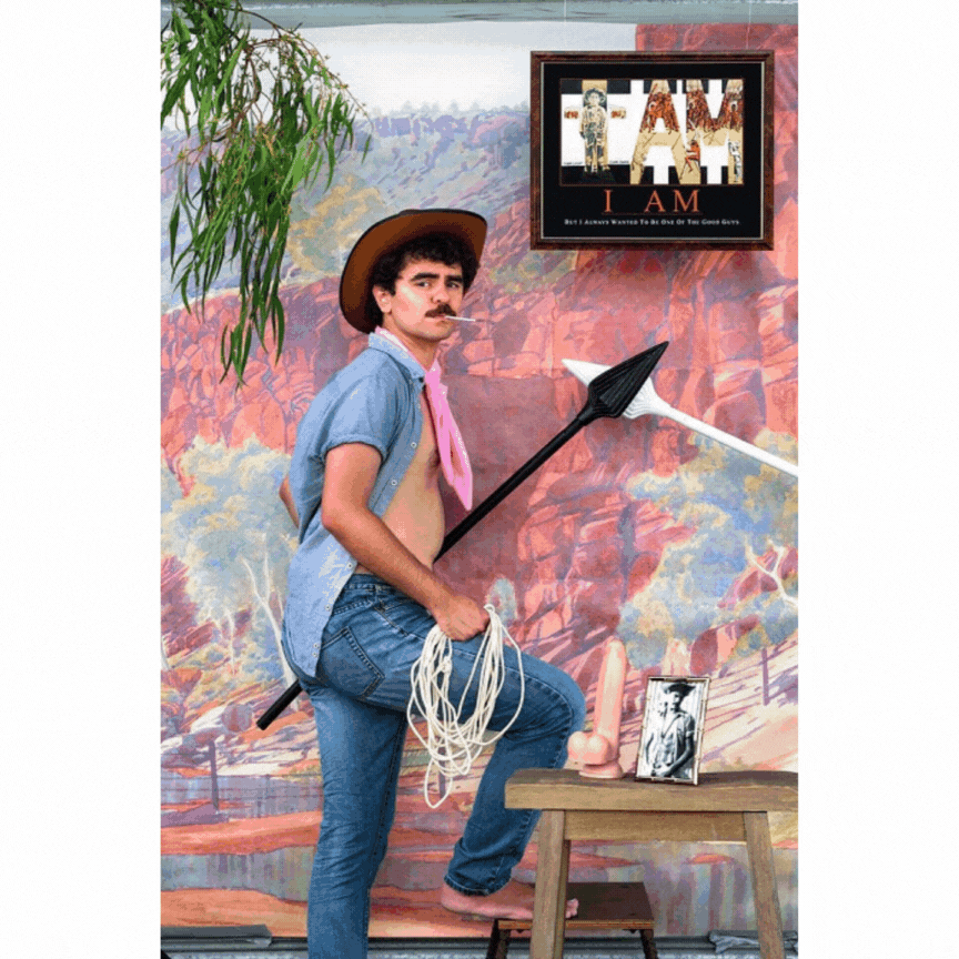 1. Keemon Williams, Self Portrait (But I always wanted to be one of the Macho Men), 2023, digital print. Courtesy of the artist. 2. Jennifer Herd, Window Pain – Portal to the Past, 2023, re-purposed Federation window, vinyl decals and digital print on Dibond aluminium. Courtesy the artist and FireWorks Gallery, Brisbane. 3. Mary Dhapalany, Twin Mat, 2023, pandanus weaving. Courtesy the artist and Bula’Bula Arts, Northern Territory