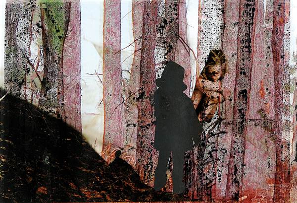 What have we lost?, 2013, unique state, linocut, monoprint, archival digital print on BFK Rives, 50 x 70cm. Photography: Chris van der Spuy