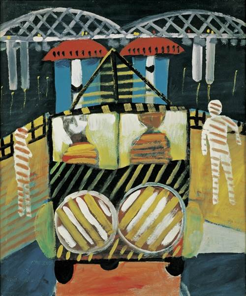 Blackman’s use of tempera, oil and enamel paint gave him the freedom to work with a particular intensity. He created works with eccentric compositions and bold colours, producing challenging images that are simultaneously whimsical and psychologically disquieting.
