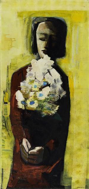 Through images of the surreal, Blackman depicted women and flowers, children in reverie, and the anthropomorphic fantasy world of Alice, which formed the renowned ‘Schoolgirls’, ‘Faces and flowers’ and ‘Alice’ series. These significant works, executed in the 1950s, form a significant part of the exhibition alongside these works are those by Blackman’s contemporaries Laurence Hope, Laurence Collinson and Jon Molvig.