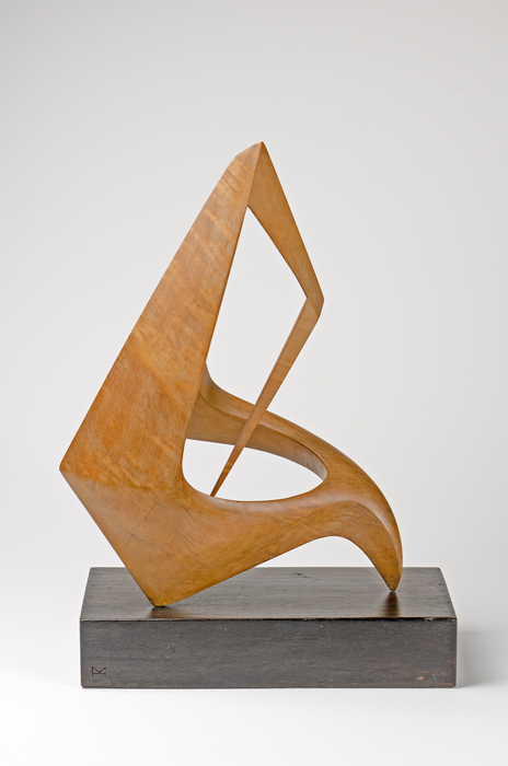 Margel Hinder, Abstract Wood Carving 2, 1952, Queensland Maple, 47 × 40 × 13cm. Private Collection. Courtesy Heide Museum of Modern Art, Melbourne