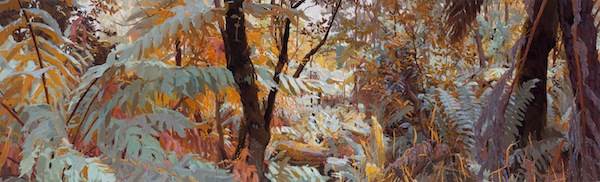 Mary Tonkin, Lyre, Kalorama, 2017, oil on linen, 97 x 317cm. Courtesy the artist and Australian Galleries, Melbourne and Sydney