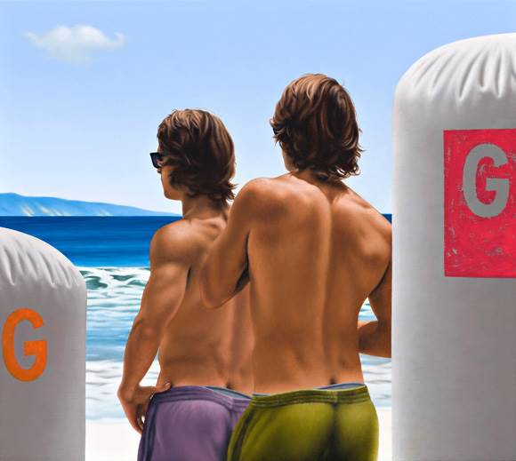 Ross Watson, Two Surfers, oil on board, 40 x 45cm