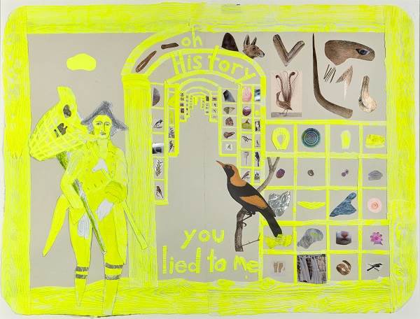 Joan Ross, Oh history, you lied to me, mixed media painting on paper, 95 x 122cm. © the artist