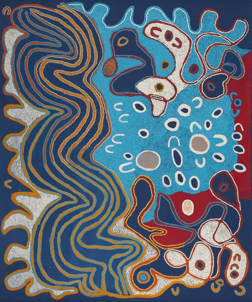 Tilau Nangala, Mikantji, 2017, acrylic on linen, 183 x 152cm. Courtesy the artist and RAFT artspace, Northern Territory