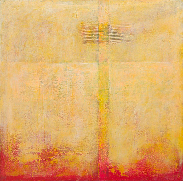 Ralph Stanton’s abstract expressions ‘evoke mood through colour, texture and underlying effect,’ the artist says. Consciously planned only broadly, not in detail, his work relies on intuition, seeking feelings of space and beauty, which arrive through process: layering, glazing, rubbing back, overpainting.