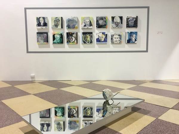 Top: Shannon Mcculloch, ‘GREATEST HITS’, oil on board (14 panels), 81 x 340cm. Bottom: Sam Bloor Graffiti Vandalism Act 2016 Section 5 (1), mirror, corncrete, steel, aerosol, 160 x 75 x 40cm. Courtesy the artists