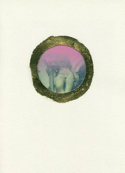 Clinton Hayden, Untitled #2, GLORY (SERIES), 2015, collage, watercolour paper, gold-leaf, acetate, acrylic, pencil, Polaroid, 18 x 25cm