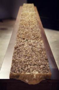 Major Prize winner Sylvia Griffin, Shoreless II, 2011, wax, found natural objects, timber, 75 x 240 x 28cm
