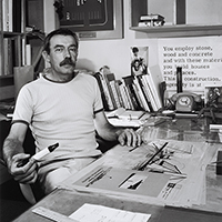 Ted Richards, Enrico Taglietti in his studio, 1979, silver gelatin print, 35.6 × 27.9cm / Collection Canberra Museum and Gallery. Purchased 2013
