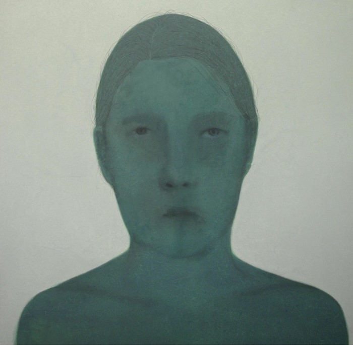 “There is a bold monumentality to Minjung Kang’s Silence. The use of gouache is particularly delicate, and works well with Kang’s choice of a refined palette, giving the work a timeless quality. Compositionally, she plays with layered forms: moving between the flatness of the portrait’s rendering to the fineness of the subject’s hair, all placed against the solid background. This invites the viewer to get closer, adding a visual surprise, and deeper engagement. One is intrigued by this portrait. The image may be flat, but the emotion remains intense. It has a sculptural quality, which challenges that flatness, and allows the mind to roam and find connections to ancient histories and narratives that bridge past, place and present.”