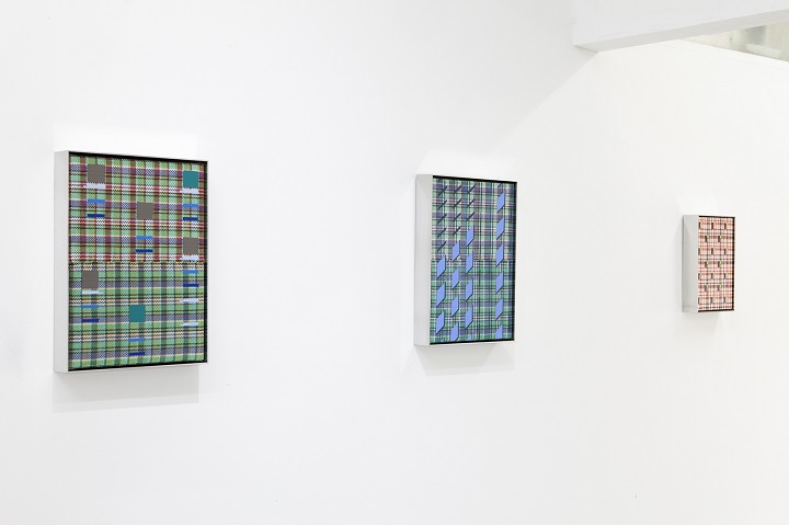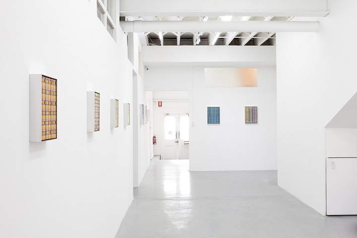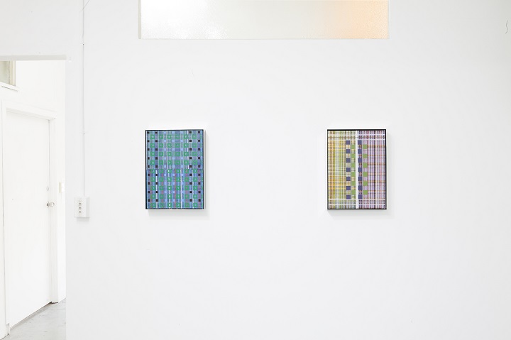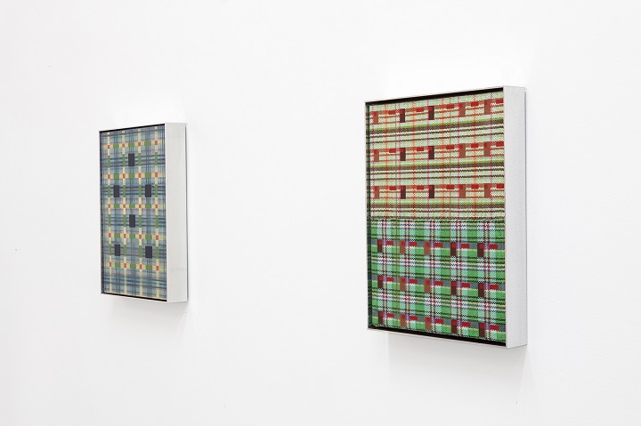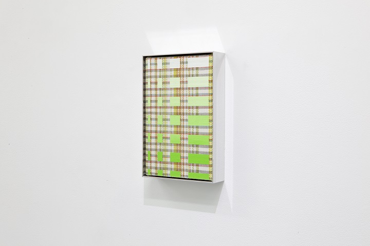 ‘Twins’ presents a new body of work by New Zealand born and Melbourne based artist Tia Ansell; intricately patterned weaving-paintings which reference the grids and geometries in our urban landscapes. Through a coding system, Ansell translates the gridation and light patterns of her surroundings into weaves produced on her shuttle loom. The constraints of the weave regulate the design possibilities and organise space. Influenced by the art movements of Constructivism and Bauhaus, her practice is interested in the geometries of mass production afforded by industrialisation. As such, Ansell investigates the history of formalism and object-hood as it connects through visual art, architectural and design discourses.