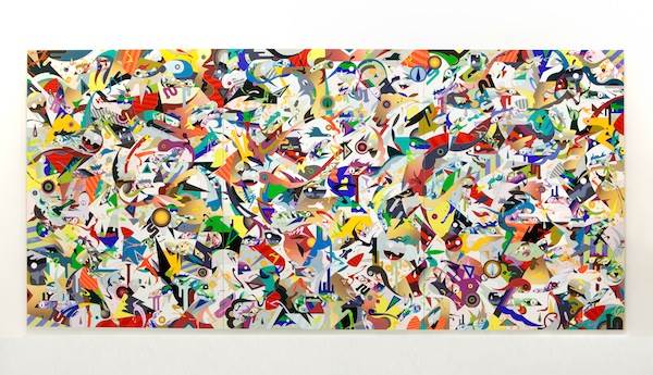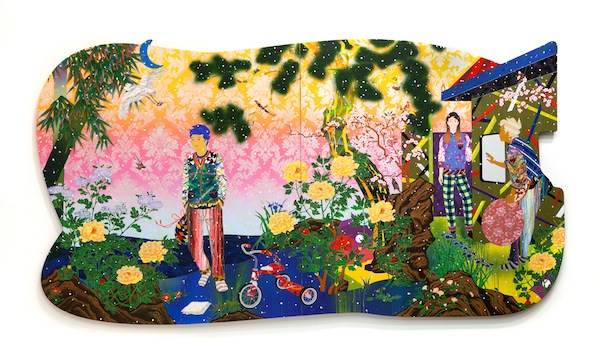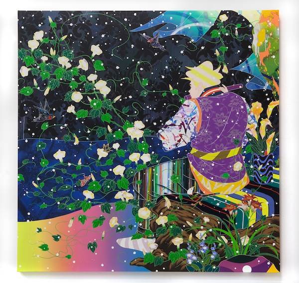 Tomokazu Matsuyama, Keep Fishin’ For Twilight, 2017, acrylic and mixed media on canvas, 210 x 450cm. Photograph: Yojiro Imasaki