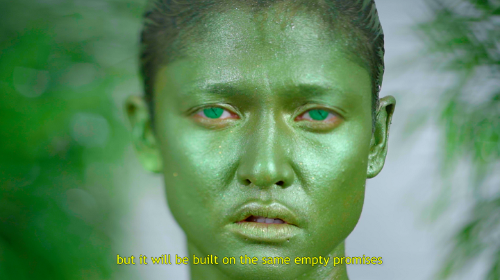 Korakrit Arunanondchai and Alex Gvojic (with Tosh Basco), No history in a room filled with people with funny names 5 (still), 2018, three-channel video, HD, colour, and sound. Commissioned by Centre d’Art Contemporain Genève for Biennale of Moving Images. © the artist. Courtesy the artist, Bangkok City Gallery, Thailand, Carlos/Ishikawa, London, C L E A R I N G, New York/Brussels, Kukje Gallery, Seoul and Museum of Contemporary Art Australia, Sydney