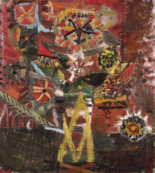 James Drinkwater, Arranging flowers while waiting for the green car, 2020, oil on hardboard, 122.5 x 110cm