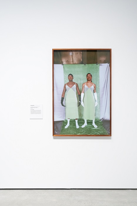 Philip said: “There is a quiet powerfulness to wani toaishara’s do black boys go to heaven. It is a power made explicit in the subjects’ strong and self-assured expressions, but also written into the way that wani knowingly plays with (and exposes) the conventions of studio portraiture. The two figures are confident yet slightly stilted; they are dressed up but aren’t wearing shoes; the fabric backdrop has been carefully chosen to match their dresses and yet we see the clips securing it in place. Standing in this makeshift studio, the figures feel close to the surface of the image. This sense of intimacy and immediacy, as well as their open, front-facing posture, is striking but it is also a political gesture. wani turns a simple portrait into an assertion of presence and visibility. The two subjects ask us to see them as they are. As wani so movingly notes in his artist statement, ‘Worthy. Here. Still.’ ”